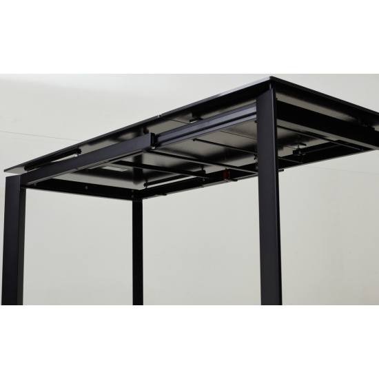вставка 50 см выдвигается из-под столешницы с одной стороны столешницы;Столешница "под мрамор" матовая, толщина столешницы 11 мм, не царапается, не впитывает жидкость, легко моется, не боится перепадов температур;основание стола - металл, цвет - черный, ножки стола расположены по углам столешницы под углом;