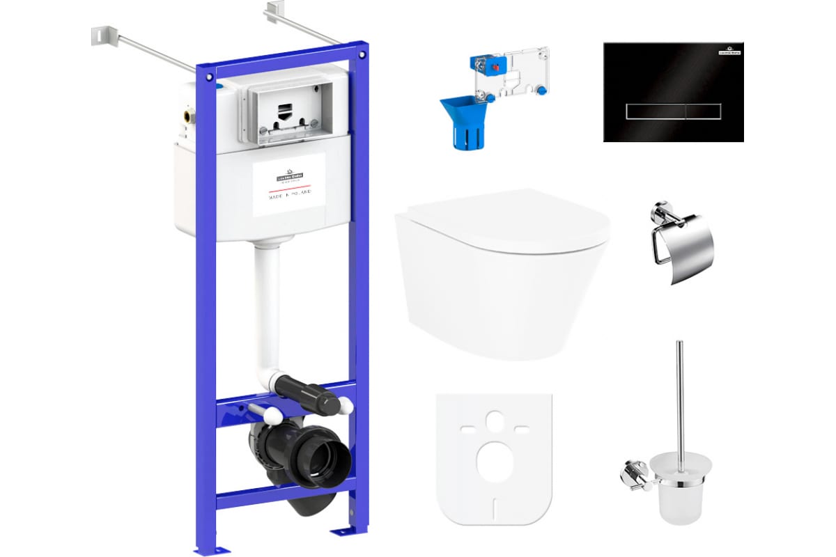 Комплект 9 в 1 Lavinia Boho Biore Compacto Rimless 97020154 решение для монтажа в любую типовую сантехническую шахту вне зависимости от расположения инженерных коммуникаций.