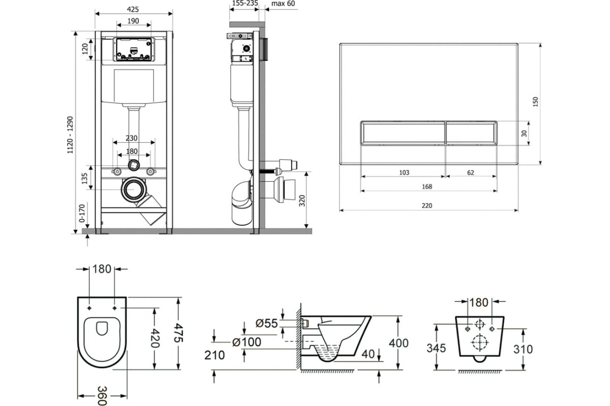 Комплект 9 в 1 Lavinia Boho Biore Compacto Rimless 97010052 решение для монтажа в любую типовую сантехническую шахту вне зависимости от расположения инженерных коммуникаций.