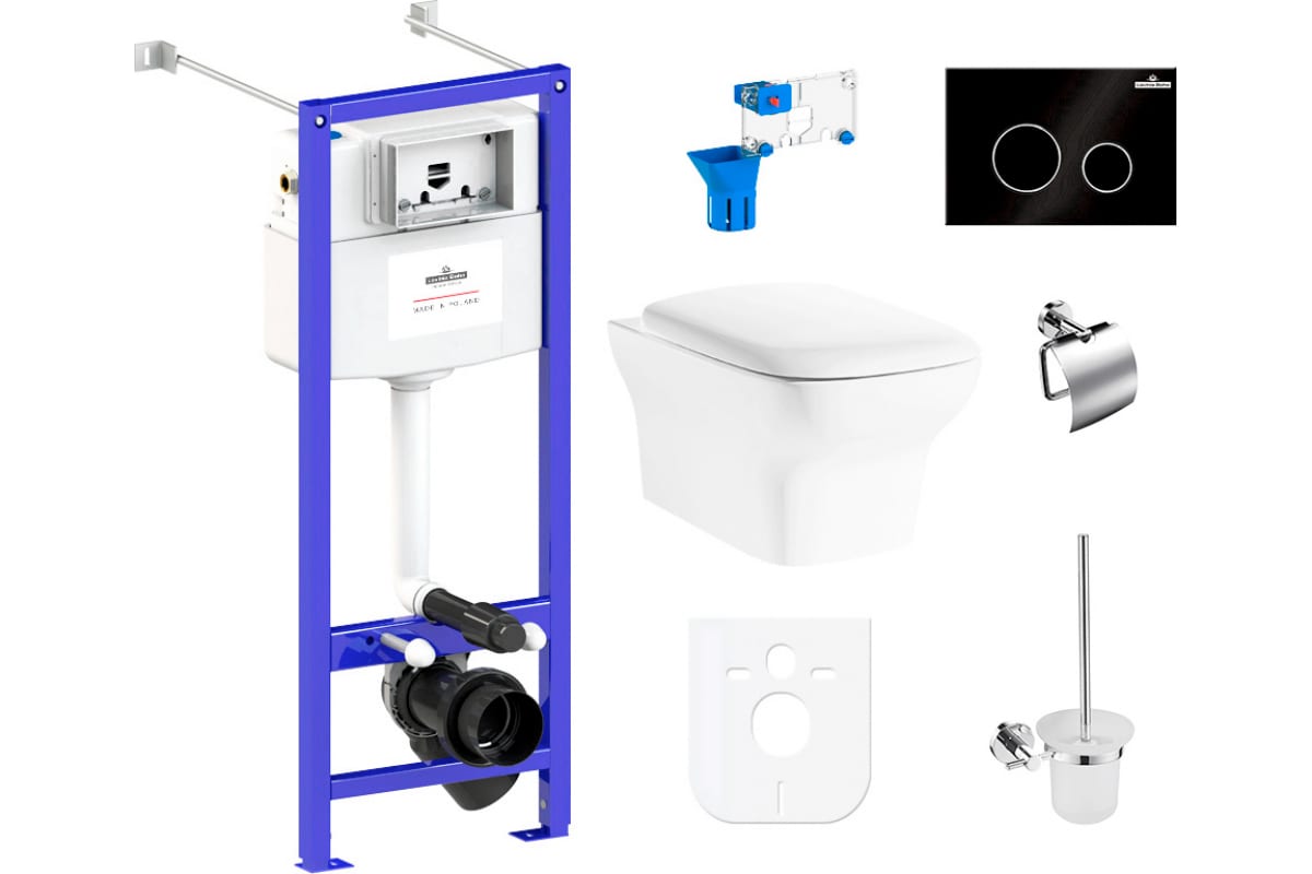 Универсальная инсталляция для монтажа в любую типовую сантехническую шахту. Инсталляционная система оснащена универсальным комплектом креплений, что позволяет производить не только стандартный «прямой» монтаж рамы к стене, но и осуществлять «поворотный» монтаж в угол.