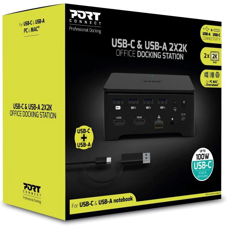 • Jungtys 2 x HDMI, 3.5 mm Audio, 4 x USB 3.2, RJ-45, USB-C