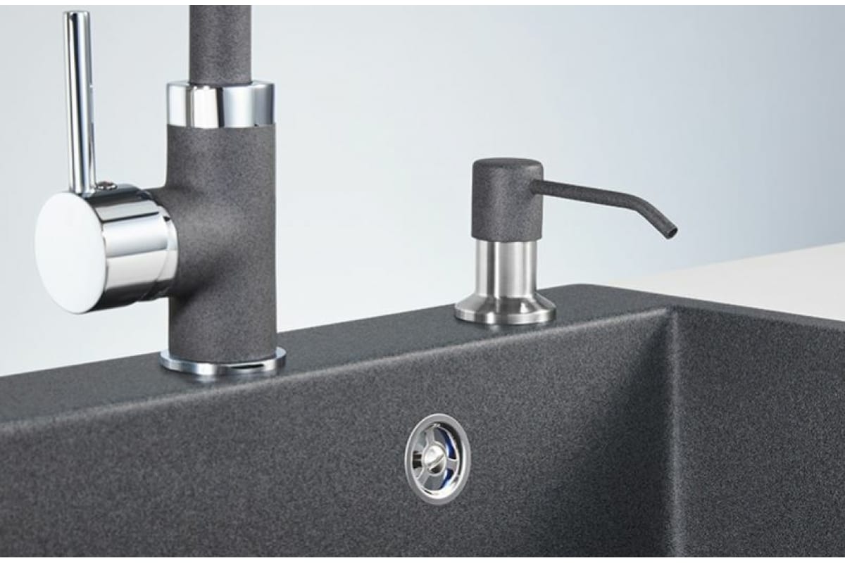 Дозатор под жидкое мыло Granula GR-1403 графит изготовлен из высококачественных материалов: колба выполнена из пластика, дозатор - из нержавеющей стали.