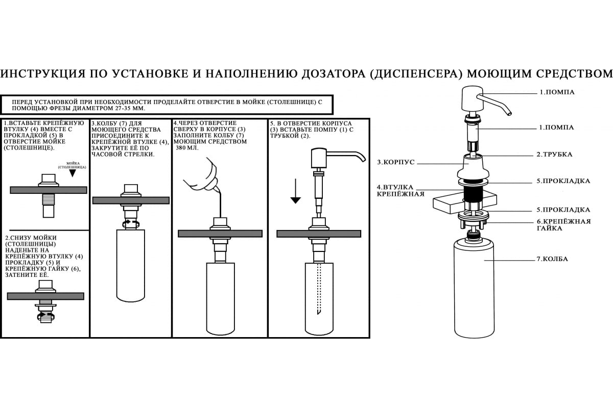 Изделие встраивается в поверхности кухонной мойки или в столешницу толщиной не более 30 мм. Диаметр установочного отверстия - 27-35 мм.