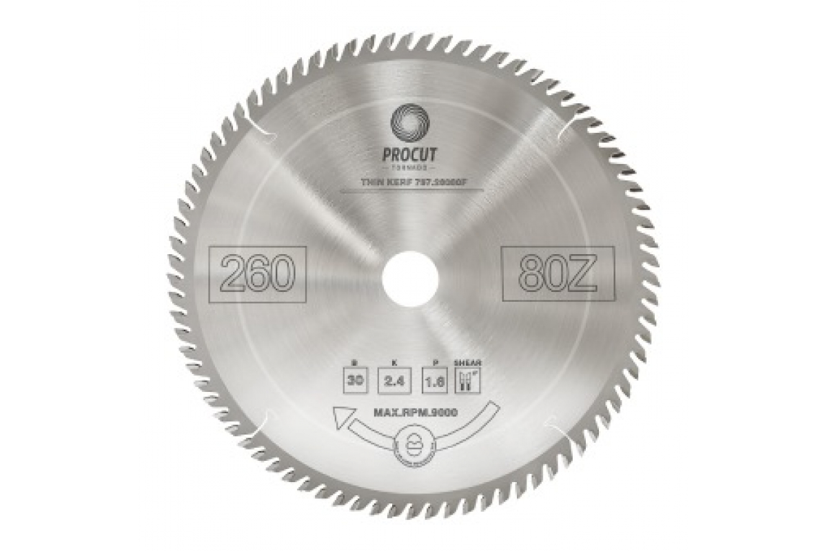 Диск торцовочный с тонким пропилом (260x30x2.4/1.6 мм; Z=80) PROCUT 797.2603080F