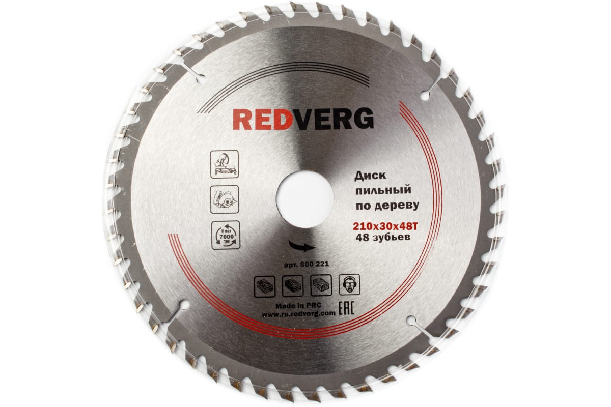Диск пильный по дереву твердосплавный (210х30/20/16 мм; 48 зубьев) REDVERG 6621227