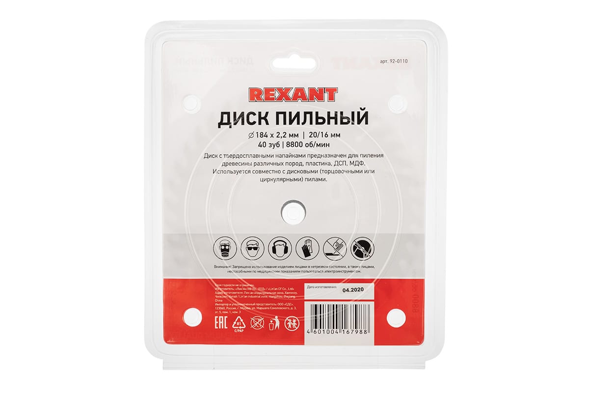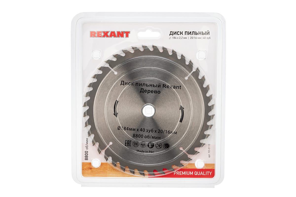 Диск пильный REXANT 184 мм х 40 зуб х 20/16 мм 92-0110