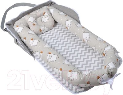 Кокон-гнездышко для новорожденных Farfello Слоны / L1