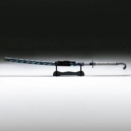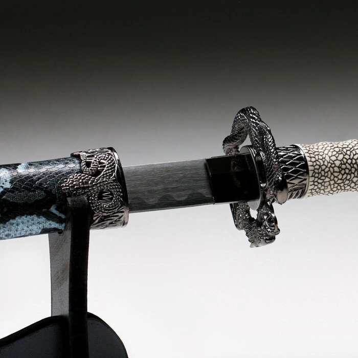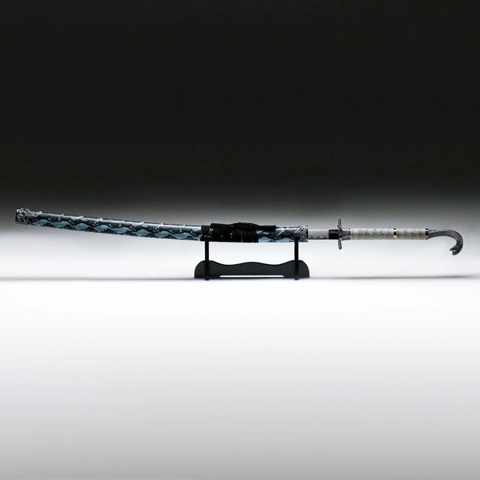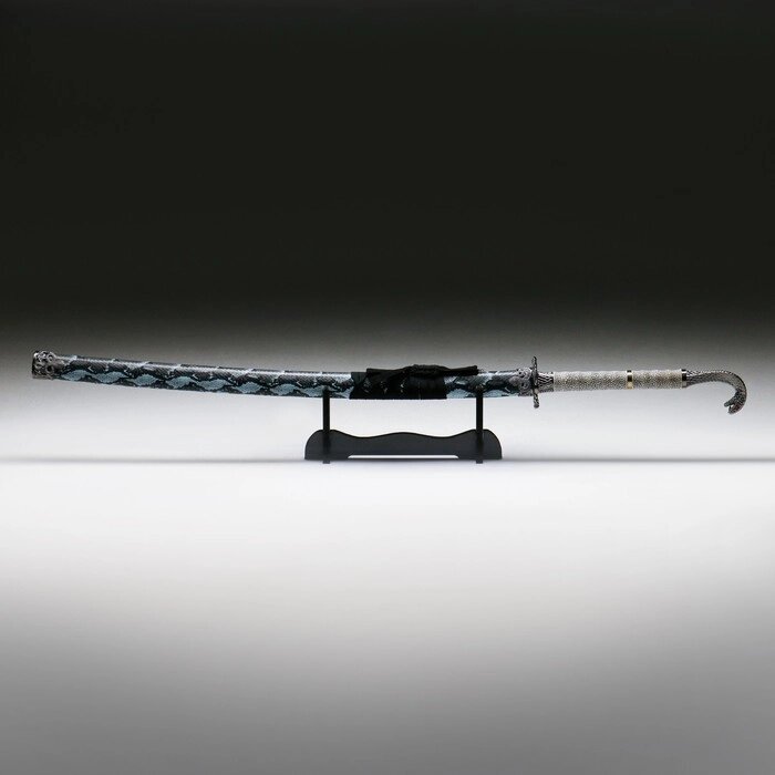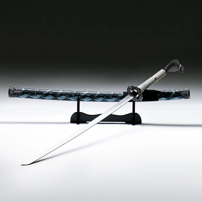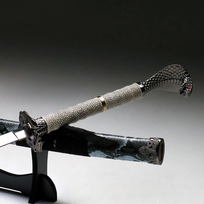Сувенирное оружие «Катана на подставке», серо-зелен. ножны под змеиную кожу, голова кобры115см