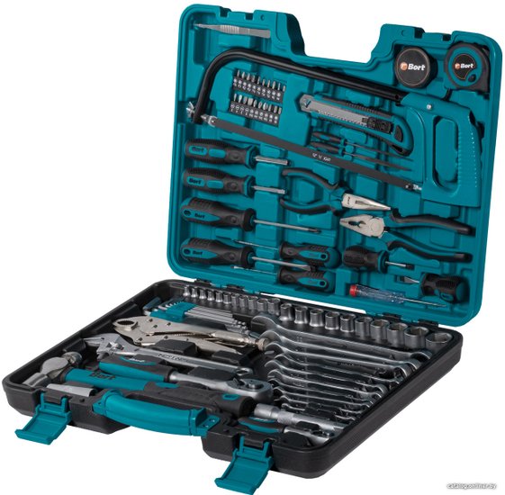 • Комплектация BTK - 86 Изолента 5 м - 1 шт Рулетка 5 м - 1 шт Ножовка по металлу с полотном из быстрорежущей стали 300 мм - 1 шт Бита 25 мм 20 шт. CRV (SL3-4-5-6-PH0-1-2-3-PZ0-1-2-3-T10-15-20-25-H3-4-5-6) Нож с лезвиями - 1 шт Напильник полукруглый 140 мм - 1 шт Напильник треугольный 140 мм - 1 шт Отвертка-держатель для бит 190 мм CRV - 1 шт Отвертка-держатель для головок 190 мм CRV - 1 шт Отвертка 6*100 (PH2) CRV 1 шт Отвертка 6*100 (SL) CRV 1 шт Отвертка 3*75 (PH0) CRV 1 шт Отвертка 3*75 (SL) CRV 1 шт Отвертка 6*38 (PH2) CRV 1 шт Отвертка 6*38 (SL) CRV 1 шт Длинногубцы 160 мм 1 шт Плоскогубцы 180 мм 1 шт Тестер 1 шт Пинцет 110 мм - 1 шт Головки 1/4' CRV 11 шт 4-4.5-5-5.5-6-7-8-9-10-11-12 мм Головки 1/2' CRV 10 шт 10-11-12-13-14-15-17-19-22-24 мм Ключ имбусовый 9 шт. размер 1,5; 2; 2,5; 3; 4; 5; 6; 8; 10 мм Пинцы 250 мм - 1 шт Ключ разводной 250 мм - 1 шт Рукоятка с трещеткой квадрат 1/2' CRV 1 шт Рукоятка с трещеткой квадрат 1/4' CRV 1 шт Молоток шаровый 1 шт Ключ гаечный комбинированный CRV 10 шт. размер 6-8-10-11-12-13-14-17-19-22 мм Удлинитель квадрат 1/2' - 1 шт Головка свечная 16 мм - 1 шт Кейс