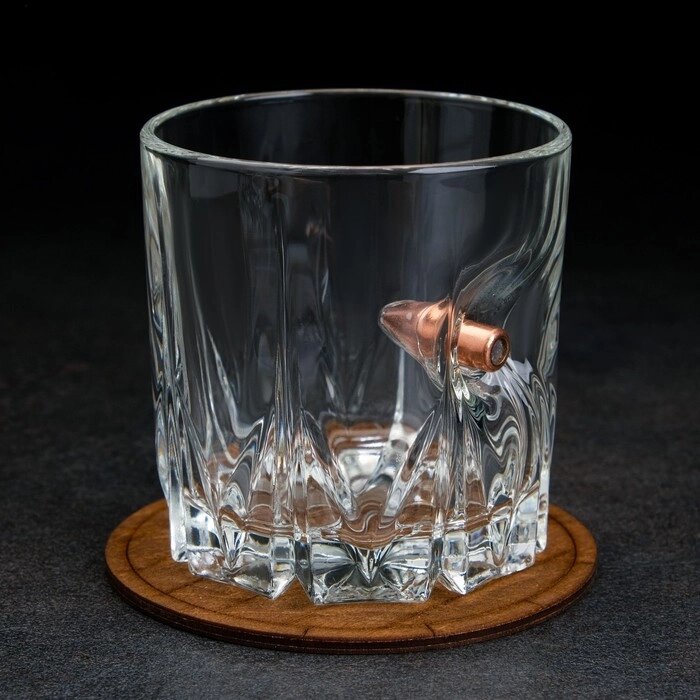 Набор "Непробиваемый", 2 стакана 200 мл с пулей, камни для виски 4 шт. в мешочке, подставка