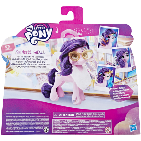 Игровой набор MY LITTLE PONY Сияющие прически Пипп F4281Знакомьтесь с Принцессой Петалс с Зефирных Высот! Она стильная и невероятно талантливая поп-звезда. Представьте себе, как Принцесса Петалс, вдохновленная анимационным фильмом “Май Литтл Пони: Новое поколение”, готовится к выступлению и создает уникальные стили, комбинируя макияж и наряды!Мягкую фиолетовую гриву фигурки можно уложить и украсить на ваш вкус, а на тело, лицо и крылья юной звезды можно наклеить стикеры. В наборе вас ждут 17 аксессуаров для волос и нарядов, чтобы тщательно продумать концертный образ. Набор с Принцессой Петалс станет отличным подарком для больших и маленьких поклонников франшизы и займет достойное место в любой коллекции игрушек. My Little Pony и все связанные персонажи являются товарными знаками компании Hasbro. В комплекте 1 фигурка, 17 аксессуаров Характеристики продукта Фигурка Принцессы Петалс высотой около 15 см выглядит неотразимо с длинной фиолетовой гривой и особой отметкой в виде музыкальной ноты Представлена в комплекте с 4 листами наклеек для создания макияжа в различных стилях Украсьте поп-звезду с помощью бусин для волос, накладных локонов, тиары, боа и т.д. Используйте аксессуары, наклейки и элементы наряда для создания уникального стиля Принцессы Ищите также персонажа Зипп Шторм из анимационного фильма “Май Литтл Пони: Новое поколение”, чтобы разыграть увлекательные приключения сестричек! Каждый набор продается отдельно Подробнее Для детей от 5-ти лет Содержит мелкие детали, не подходит детям младше 3-х лет
