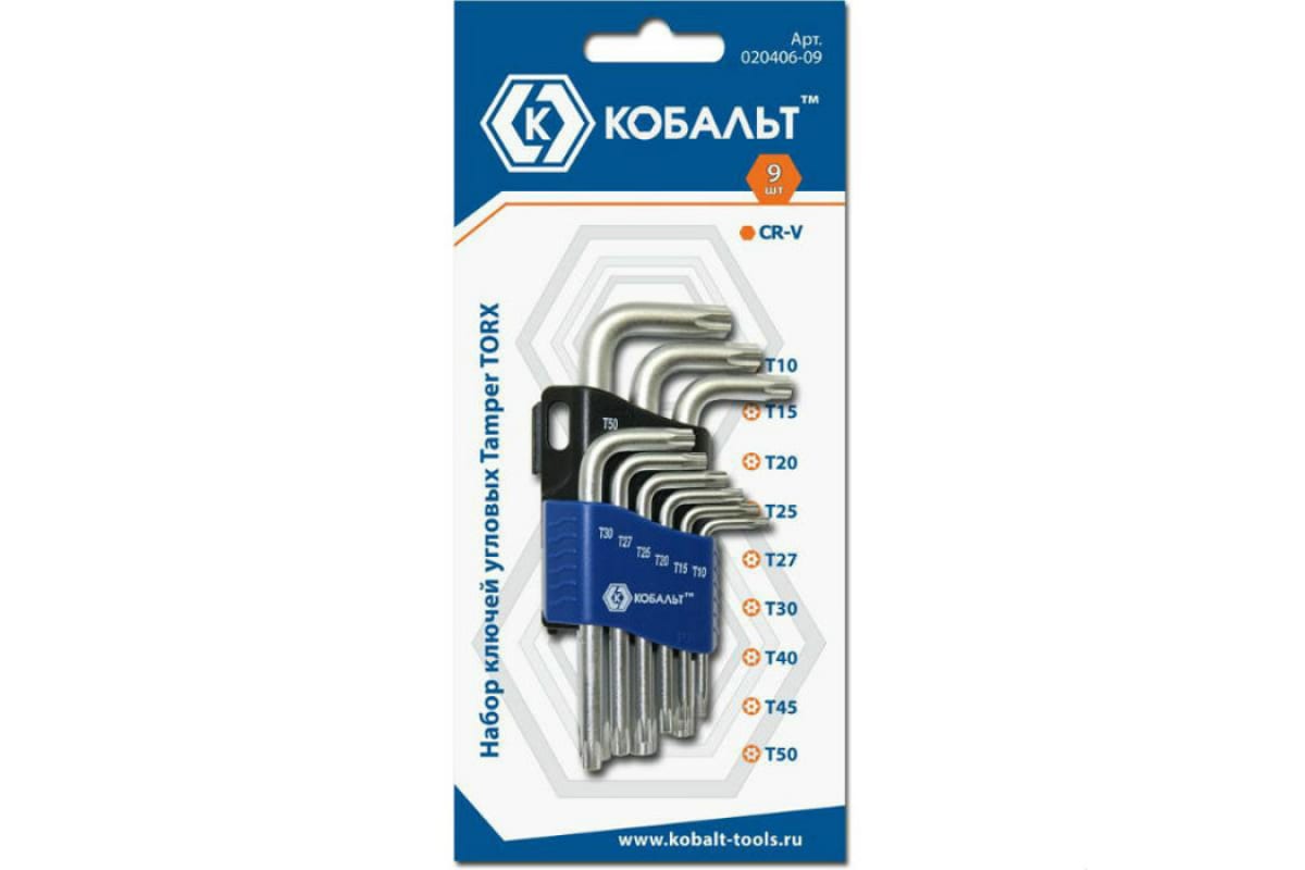 Набор ключей угловых Tamper TORX КОБАЛЬТ 020406-09