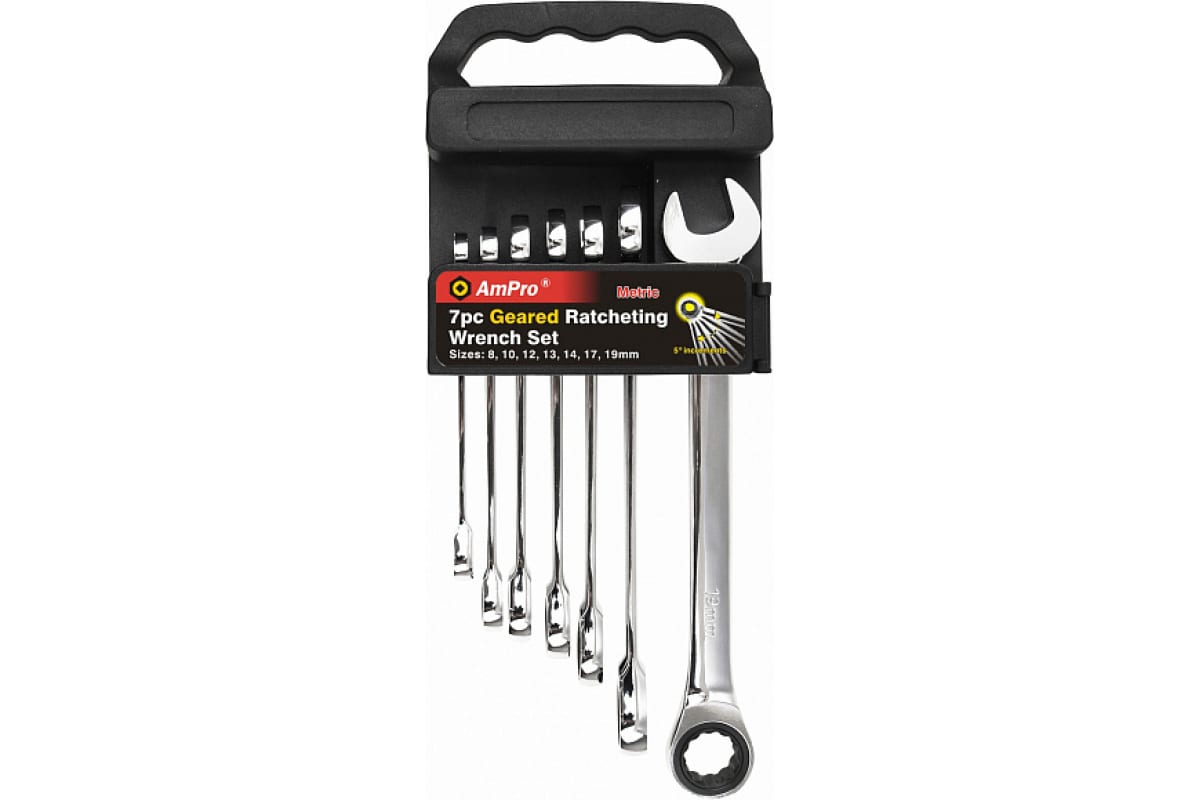 Набор ключей AmPro комбинированных трещеточных , 7 предметов 10-19мм, T41483