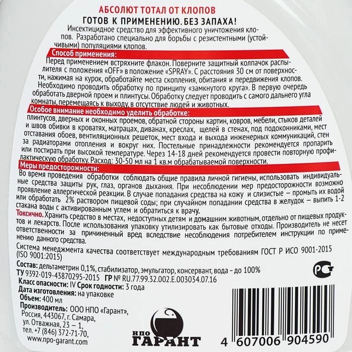 - Вид средства Спрей