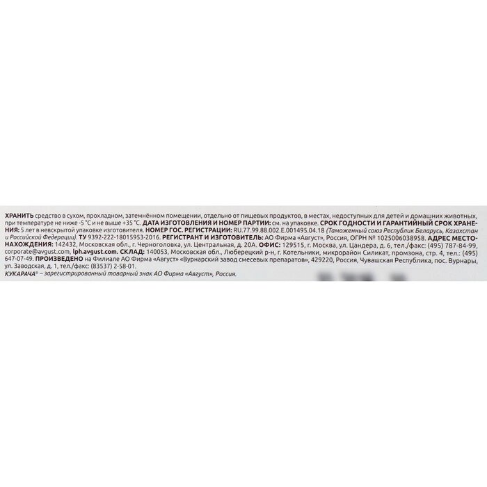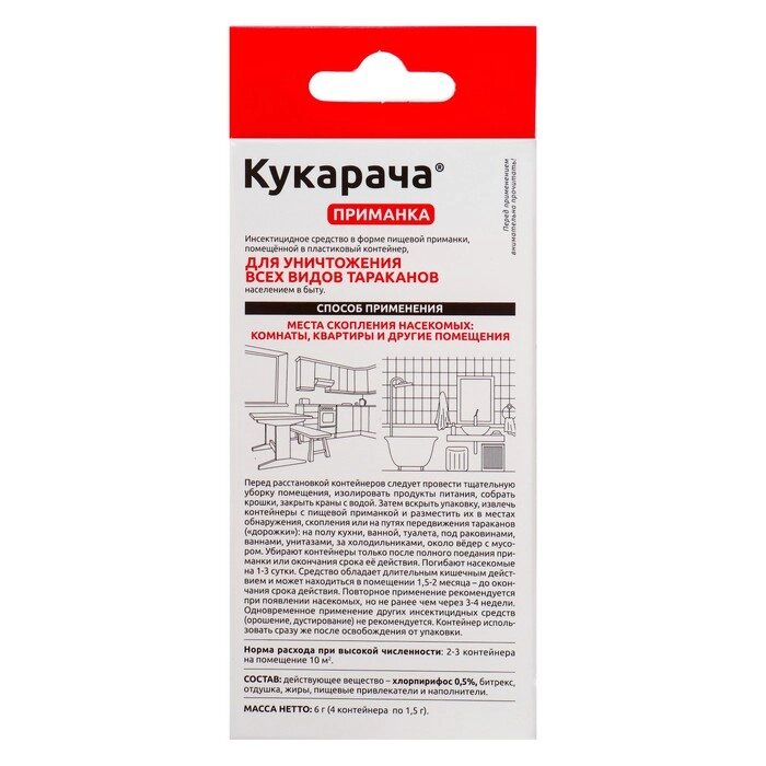 Средство от всех видов тараканов "Кукарача" приманка, 4 шт х 1,5 г