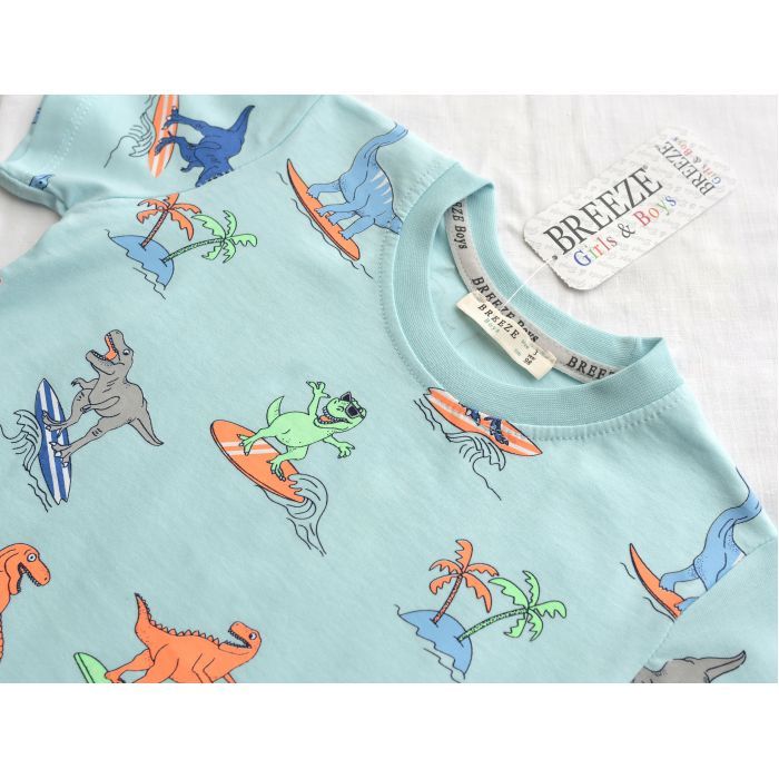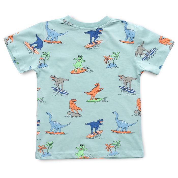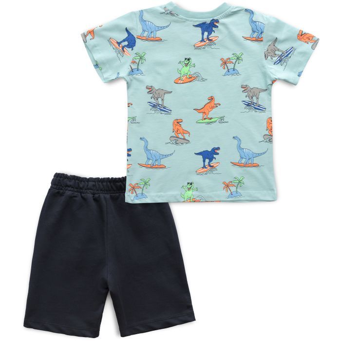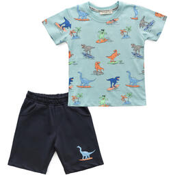 Симпатичний літній набір з яскравими динозавриками для хлопчика.