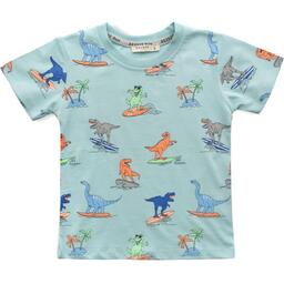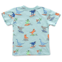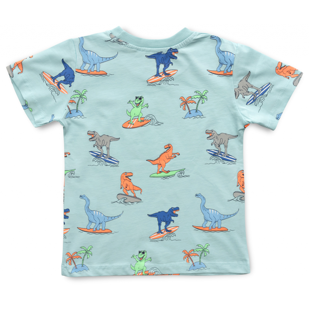 Футболка прямого покрою, з короткими рукавами та круглою горловиною. Оздоблена яскравими принтовими малюнками динозавриків. Горловина оброблена м'якою подвійною трикотажною гумкою.