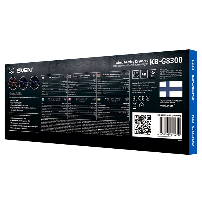 Клавиатура проводная игровая SVEN KB-G8300, подсветка RGB