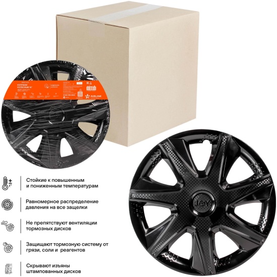 Колпаки колесные Airline 16", Джой, черный глянец/карбон, 2шт. AWCC-16-38