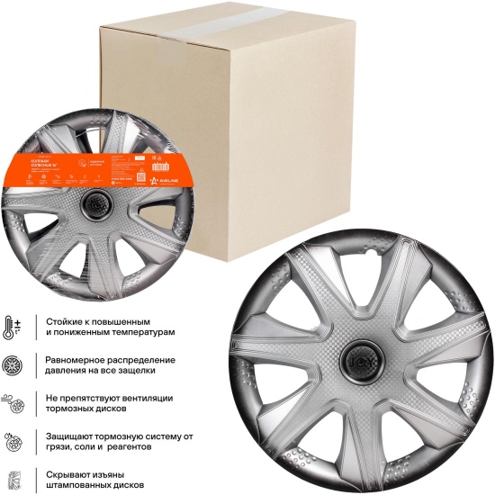 Колпаки колесные Airline 16", Джой +, серебристо-черный/карбон, 2шт. AWCC-16-37