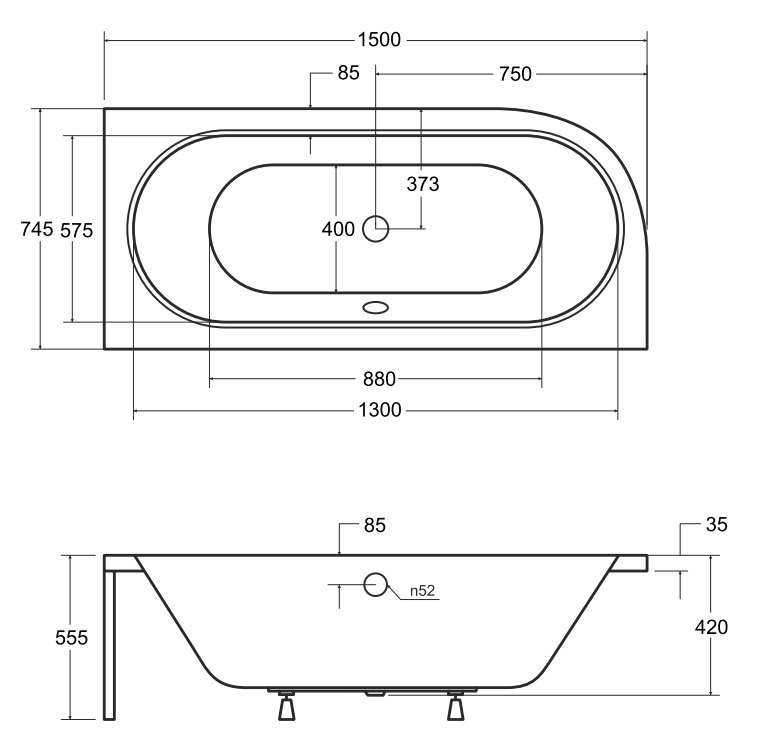 - Vonios tipas Kampinė