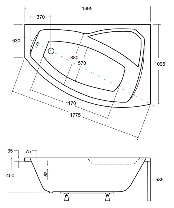 - Papildoma informacija Vonios aukštis su kojelėmis: 585 mm