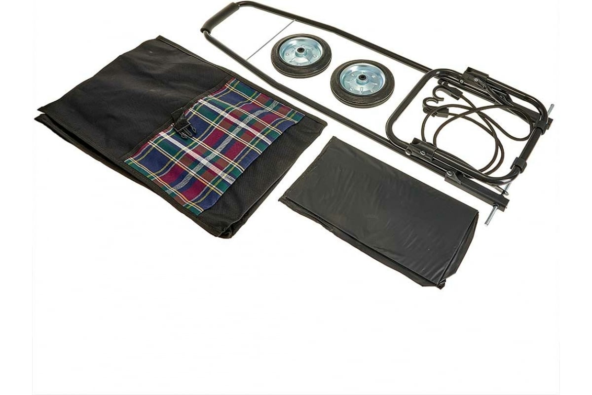 Прочный металлический каркас обеспечивает долгий срок службы. Два съемных металлических колеса обладают прочностью и маневренностью. За счет удобной складной конструкции тележки, она удобна для хранения и экономии полезного пространства.