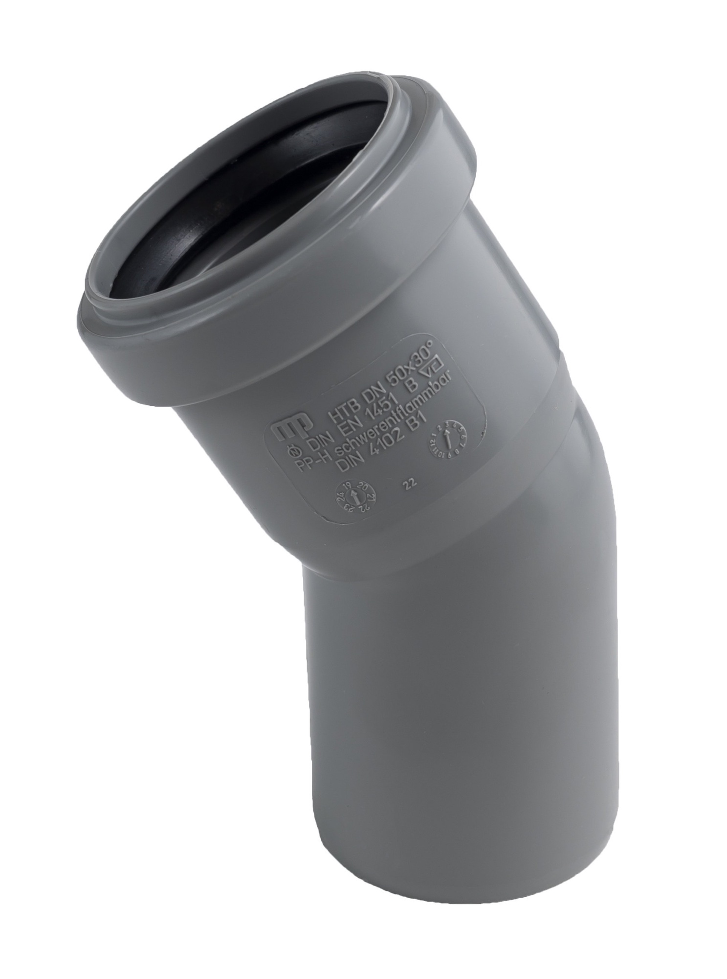 - Papildoma informacija Medžiaga: Polipropilenas. Skersmuo: 50 mm. Kampas: 22.5°. Spalva: pilka