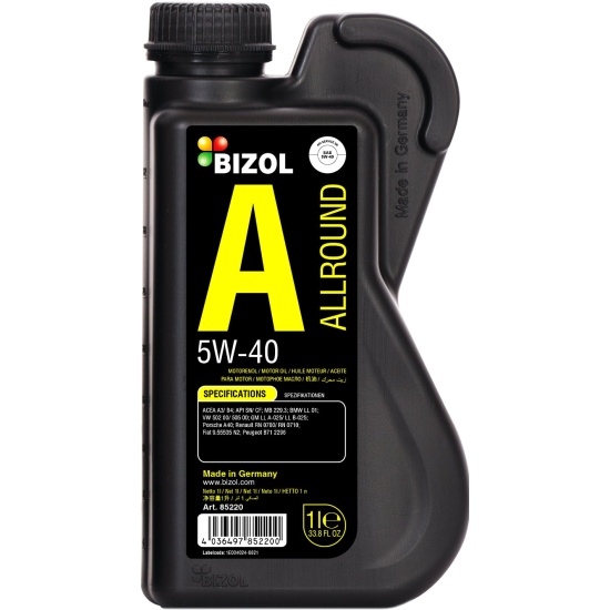 BIZOL Allround 5W-40 — современное высокопроизводительное моторное масло, обеспечивающее оптимальную защиту от износа, преждевременного старения и образования нагара. Выбор модифицирующих трение и антикоррозионных присадок, а также использование высококачественных базовых масел обеспечивают превосходную смазывающую способность, особенно в экстремальных условиях. Таким образом, BIZOL Allround 5W-40 обеспечивает постоянную защиту от отложений на деталях, подверженных износу. Это моторное масло позволяет увеличить интервалы технического обслуживания.