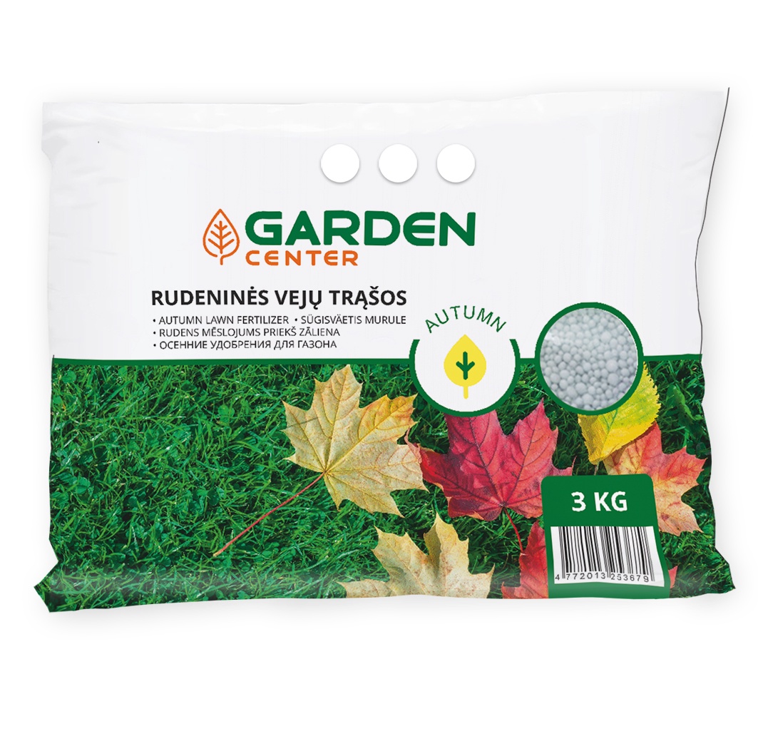 - Papildoma informacija NAUDOJIMAS Trąšas išbarstykite tolygiai visame plote. Rekomenduojame palaistyti vandeniu. Tręšiama rugsėjo–lapkričio mėn. (iki šalnų). TRĘŠIMO NORMOS: 2–3 kg/arui (100 m2). LAIKYMO SĄLYGOS Laikyti sausoje vietoje, priešingu atveju sudrėkusios trąšos gali sukietėti ir prarasti kokybę.