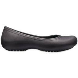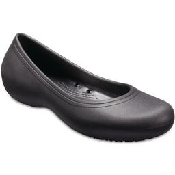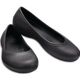 Балетки Crocs 205074-001 женские, цвет черныйИдеально подходит для бариста, работников ресторанного бизнеса, здравоохранения и сферы услуг, которые хотят, чтобы их балетки были не только стильные, но и удобные.Особенности Women’s Crocs At Work™ Flat:Закрытая конструкция носка и утолщенная плюсневой область поможет защитить стопуПолуприлегающий силуэтНескользящие протекторы Crocs Lock™Массажные точки на стелькеТрадиционный комфорт Crocs: поддержка стопы благодаря оригинальной пене Croslite™