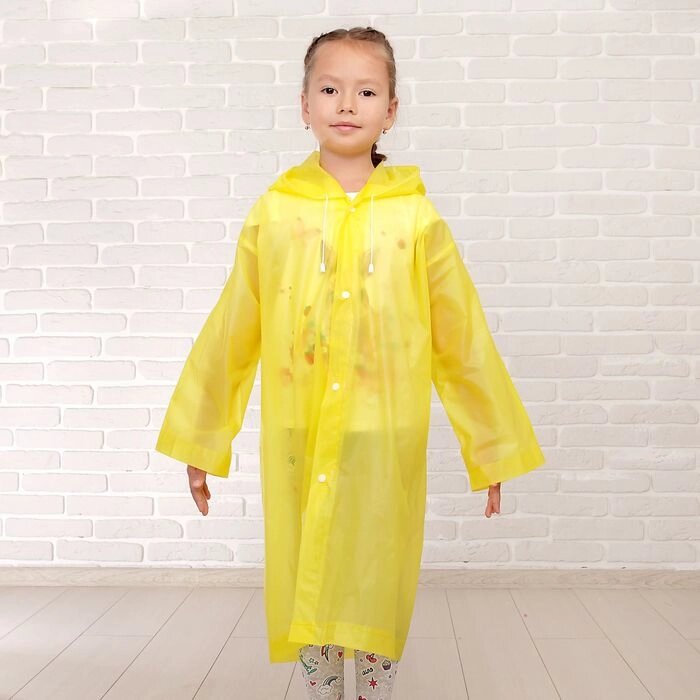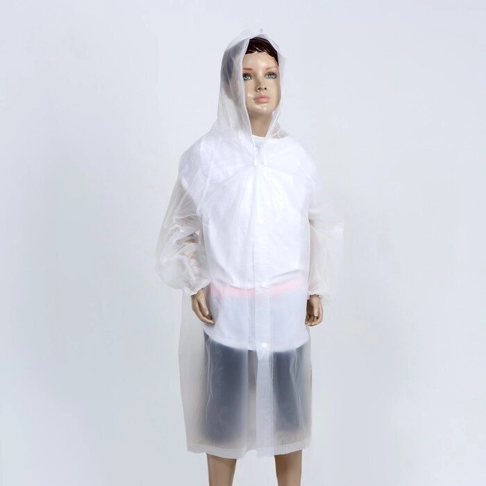 Дождевик детский однотонный прозрачный, рост 120-160 см