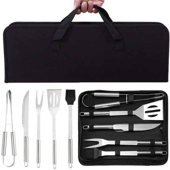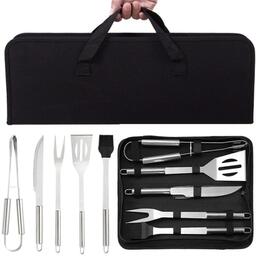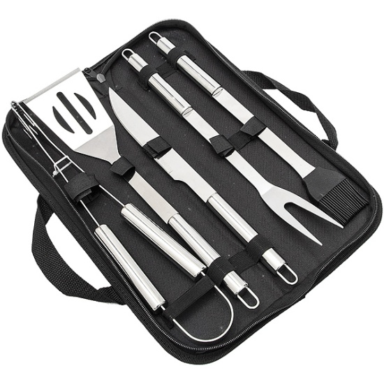 набор удобно переносить как в руках, так и на плече. Пикник на даче, обед в походных условиях или шашлыки на природе - любая затея станет проще с нашим набором.Особенности:Набор для барбекю в сумке.Сумка из полимерного волокна с пластиковыми вставками для жесткости.Столовые приборы для барбекю из коррозионностойкой стали.Размер набора в сложенном состоянии: 50*12*385 ммВес нетто: 710 гр.