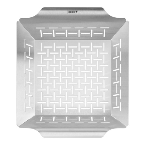 Перфорированный противень для гриля Weber в форме корзины позволяет с легкостью приготовить овощи на гарнир, если они слишком малы для размещения на решетке. Достаточно разогреть противень, поместить в него нарезанные кубиками овощи и поставить готовиться на решетке, рядом с основным блюдом. Противень также прекрасно подойдет, если нужно быстро поджарить небольшие кусочки курицы, свинины или говядины. Все продукты в нем получатся ароматными и сочными. Подходит для: Все грили Weber серии Q 300/3000 и более крупные газовые грили, а также угольные грили 47 см и более