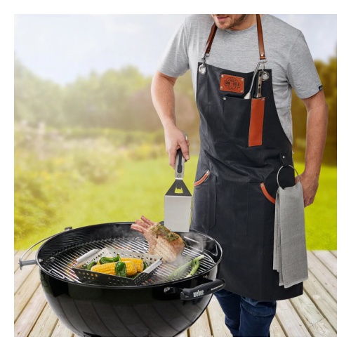 Фартук для барбекю GEFU BBQВысококачественные кожаные вставки не только обеспечивают шикарный вид аксессуара, но и несут функциональный аспект - прочность и долговечность в эксплуатации. Фартук также оснащен держателем для полотенца и карманами разных размеров. Регулируемые ремни на шее и талии делают фартук универсальным по размеру - подойдет как для женщин, так и для мужчин. Вощеный материал из хлопка - очень прочный и огнеупорный материал.Особенности:Регулируемые ремни на шее и талии.Вставки из высококачественной натуральной кожи.Держатель для полотенца или щипцов для барбекю.Карман для мобильного телефона и термометра для жарки.Приятный комфорт в ношении.Подходит и женщинам и мужчинам.Материал: 100% вощеный хлопок, воловья кожа, высококачественная нержавеющая сталь, алюминий.