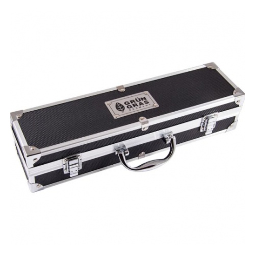 Набор для барбекю от торговой марки Grun Gras выступит Вашим помощником в приготовлении шашлыков на природе. В комплект входят: вилка, шпатель, щипцы, набор для специй. Все приборы изготовлены из стали, что является гарантией защиты от коррозии. Размер: 37*10*8 см. Материал: кейс - алюминий, полимерный материал; набор - нержавеющая сталь, полимерный материал.