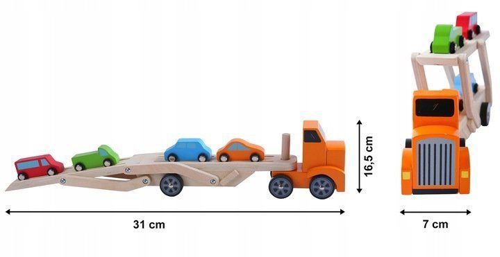 • Papildoma informacija Matmenys: 31 x 16,5 x 7 cm Komplekte: sunkvežimis ir 4 automobiliai