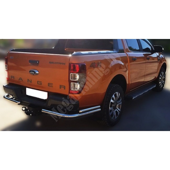 Задняя защита B1-12 для Ford Ranger 3 (2015-2019) двойные углы. Материал обвеса - нержавеющая сталь марки AISI 304 коррозийно-стойкая жаропрочная, что позволяет не опасаться коррозии. Однако для гарантированного сохранения внешнего вида в условиях зимней эксплуатации и воздействия агрессивных сред рекомендуется регулярный уход с помощью полировочных паст для изделий из нержавеющей стали.