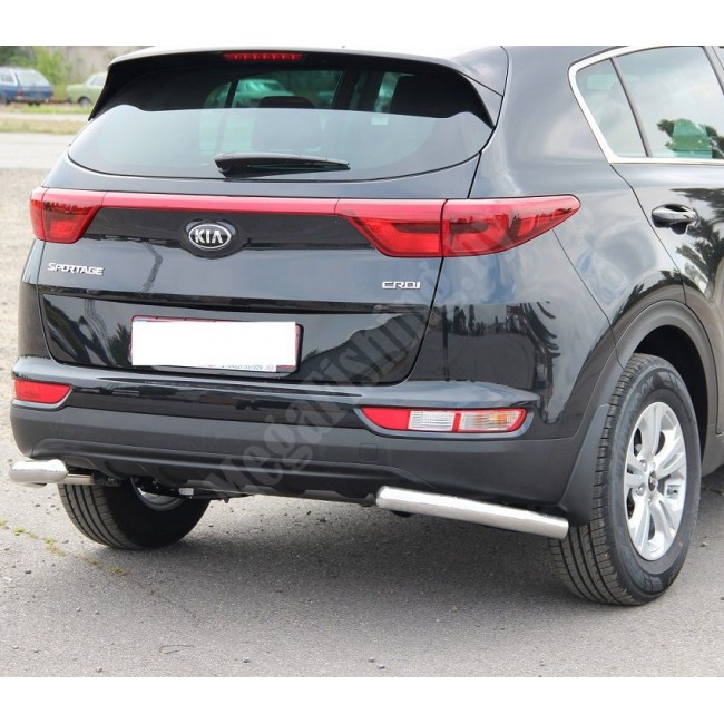 Задняя защита B1-09 для Kia Sportage 4 (2016-2021) углы. Материал обвеса - нержавеющая сталь марки AISI 304 коррозийно-стойкая жаропрочная, что позволяет не опасаться коррозии. Однако для гарантированного сохранения внешнего вида в условиях зимней эксплуатации и воздействия агрессивных сред рекомендуется регулярный уход с помощью полировочных паст для изделий из нержавеющей стали.
