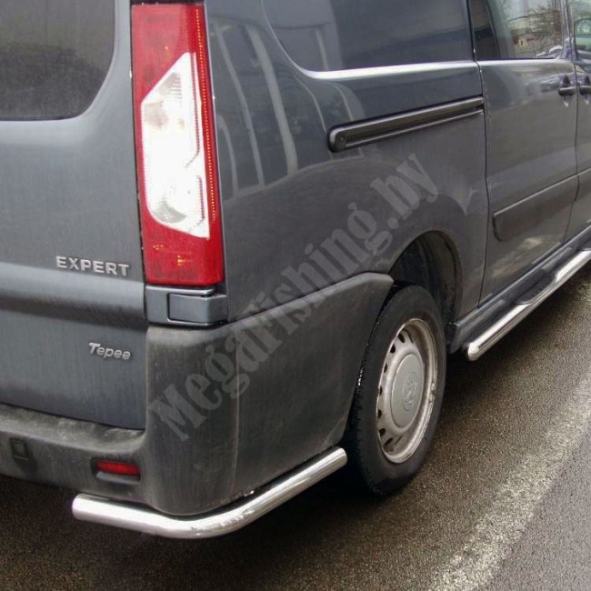 Задняя защита B1-09 для Peugeot Expert 2 (2007-2016) углы. Материал обвеса - нержавеющая сталь марки AISI 304 коррозийно-стойкая жаропрочная, что позволяет не опасаться коррозии. Однако для гарантированного сохранения внешнего вида в условиях зимней эксплуатации и воздействия агрессивных сред рекомендуется регулярный уход с помощью полировочных паст для изделий из нержавеющей стали.