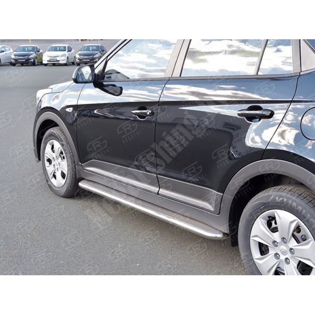 HYUNDAI CRETA 2016-2021 Пороги труба d42 С листом (лист нержавейка, проф. нержавейка)(вариант3) HCRL-0024253 от проиводителя защитного тюнинга и аксессуаров для автомобилей ТМ "RUSSTAL".
