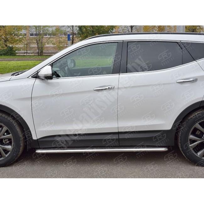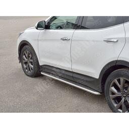 HYUNDAI Santa Fe Premium 2015-2017 Пороги труба d42 С листом (лист нержавейка, проф. нержавейка)(вариант3) HSFPL-0024483 от проиводителя защитного тюнинга и аксессуаров для автомобилей ТМ "RUSSTAL".