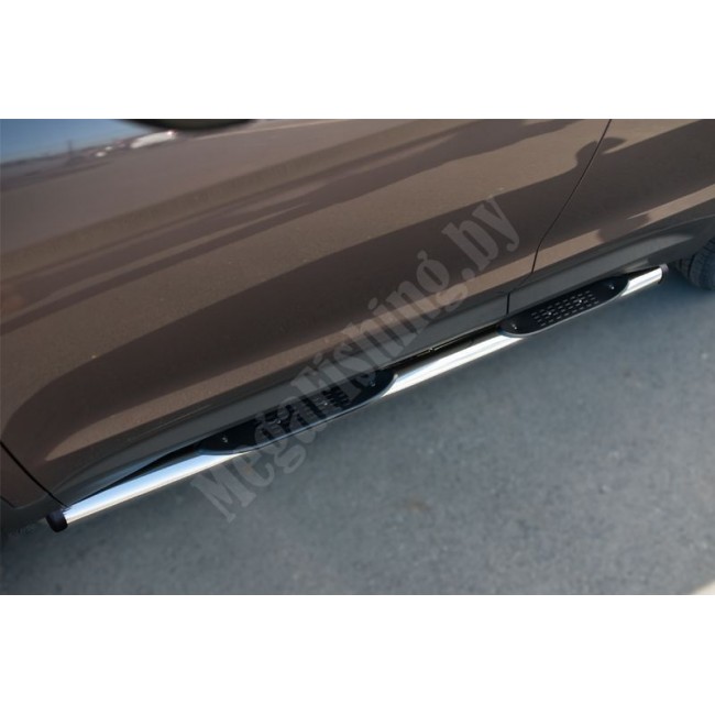 HYUNDAI SANTA FE GRAND 2014-2015 Пороги труба d76 с накладкой (вариант 2) HSFT-0020092 от проиводителя защитного тюнинга и аксессуаров для автомобилей ТМ "RUSSTAL".