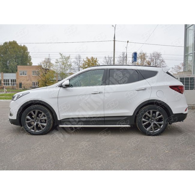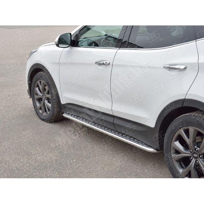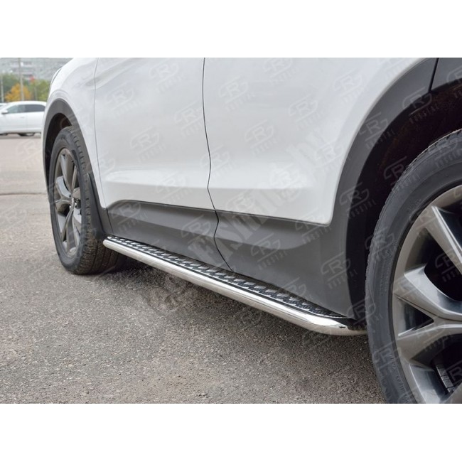HYUNDAI Santa Fe Premium 2015-2017 Пороги труба d42 С листом (лист алюминий, проф. нержавейка)(вариант1) HSFPL-0024481 от проиводителя защитного тюнинга и аксессуаров для автомобилей ТМ "RUSSTAL".