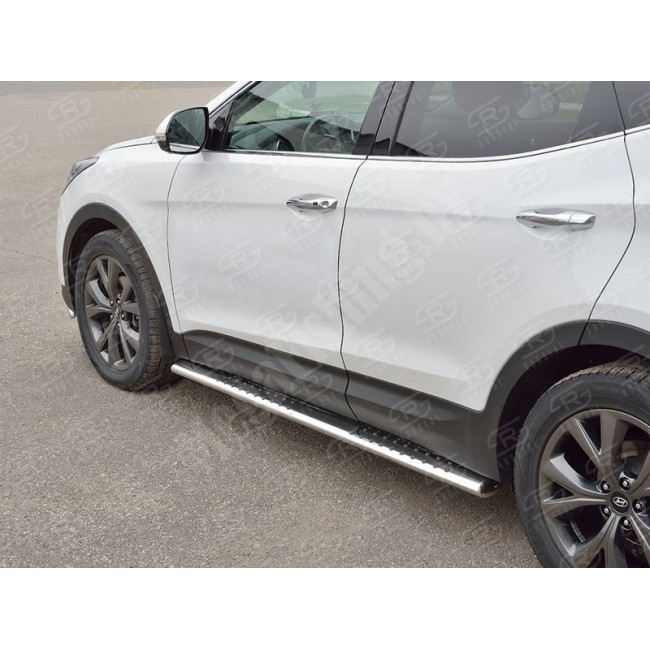 HYUNDAI SANTA FE PREMIUM 2015-2017 Пороги труба 120х60 овал с проступью HSFPO-002446 от проиводителя защитного тюнинга и аксессуаров для автомобилей ТМ "RUSSTAL".