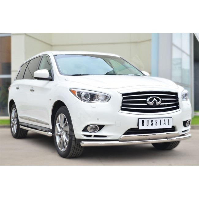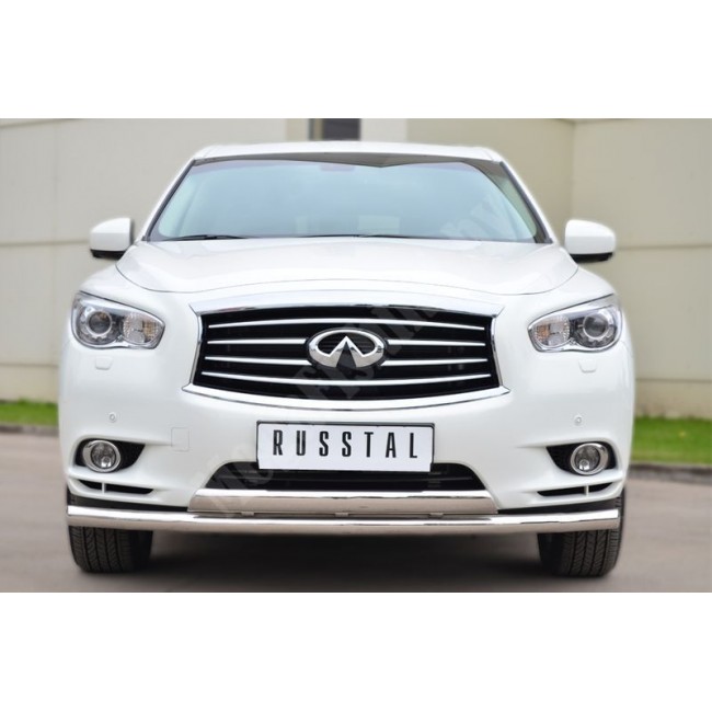 Infiniti JX35 2012-2014 Защита переднего бампера d63 (секции) 75х42 (дуга) JXZ-001457 от проиводителя защитного тюнинга и аксессуаров для автомобилей ТМ "RUSSTAL".