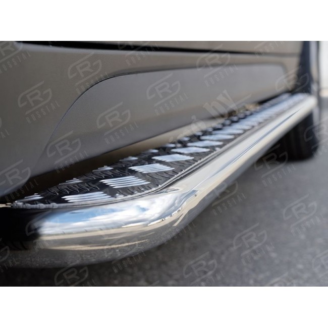 HYUNDAI Tucson 2015-2017 Пороги труба d42 с листом (лист алюминий, проф. нержавейка)(вариант1) HTL-0022371 от проиводителя защитного тюнинга и аксессуаров для автомобилей ТМ "RUSSTAL".