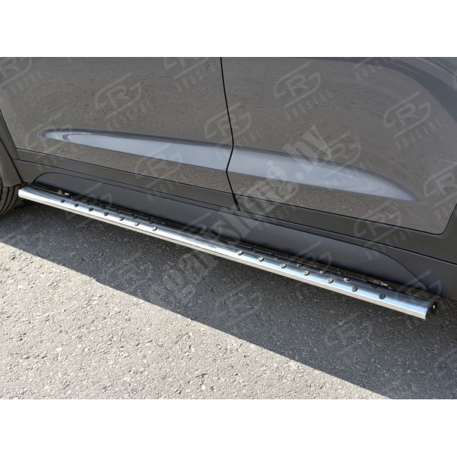 HYUNDAI Tucson 2015-2017 Пороги труба 75х42 овал с проступью HTO-002236 от проиводителя защитного тюнинга и аксессуаров для автомобилей ТМ "RUSSTAL".