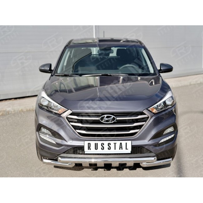 HYUNDAI Tucson 2015-2017 Защита переднего бампера D63 дуга-D63 дуга+клыки HTZ-002230