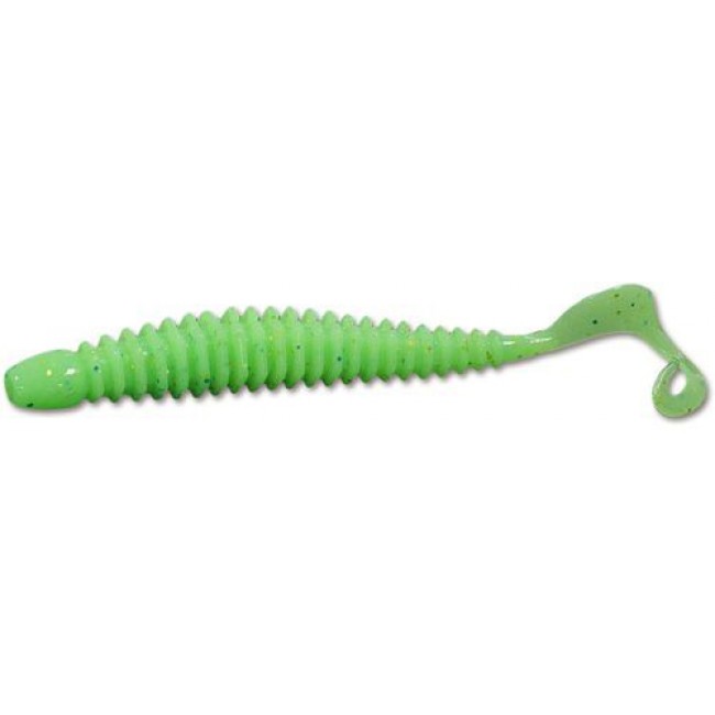 Тело Turborib напоминает червя, хвостовая же часть твистерная. Колебания на проводке создаются буквально каждым элементом приманки. Вяло, размеренно, но крайне соблазнительно «работает» тело Turborib, легко включается и стабильно продолжает играть твистерный хвостик, а рифленность почти всей поверхности приманки еще больше подчеркивает аппетитность и легкодоступность добычи, которую редко когда даже сытый хищник проигнорирует. Едва заметное утолщение на теле придает Turborib особую изюминку в игре, проявляющуюся, прежде всего, на паузах и при свободном парении. Это наши хищники оценили буквально на первых же тестовых рыбалках.